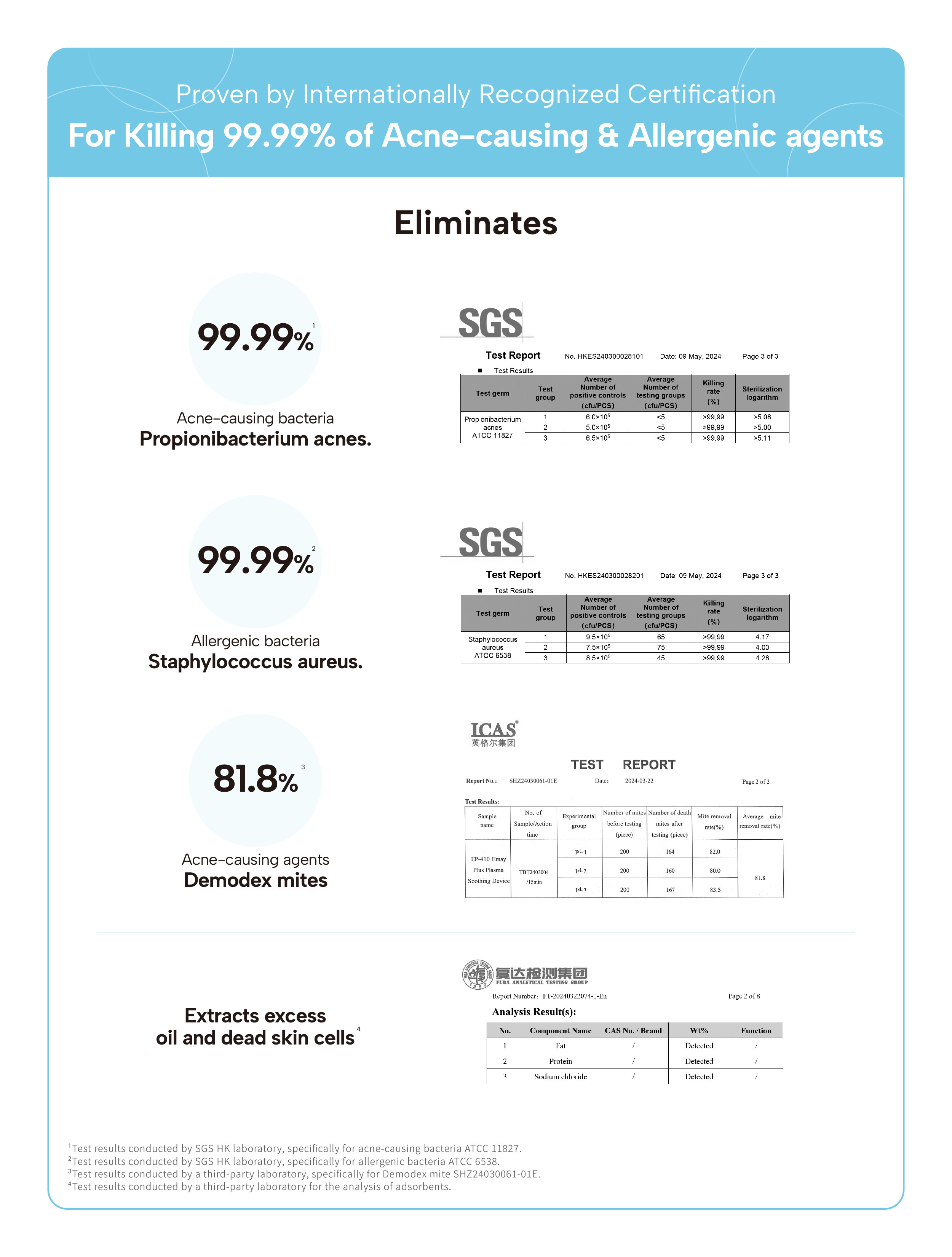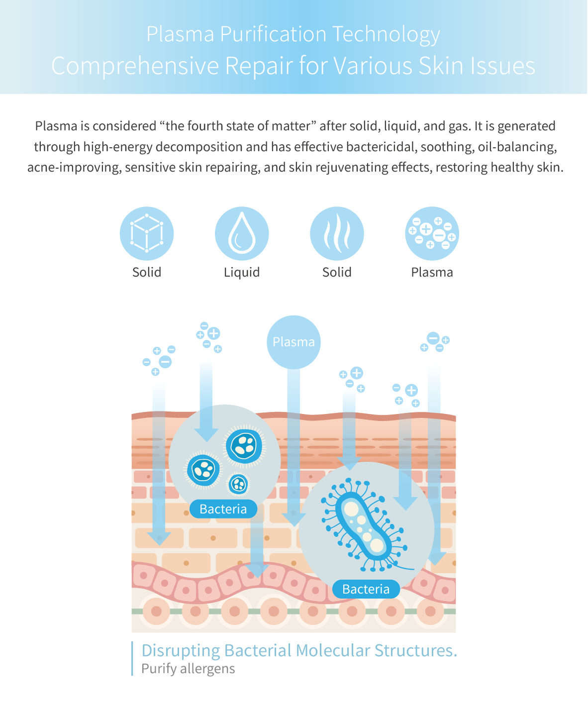 .Utilizes plasma technology to kill acne-causing and allergenic bacteria
